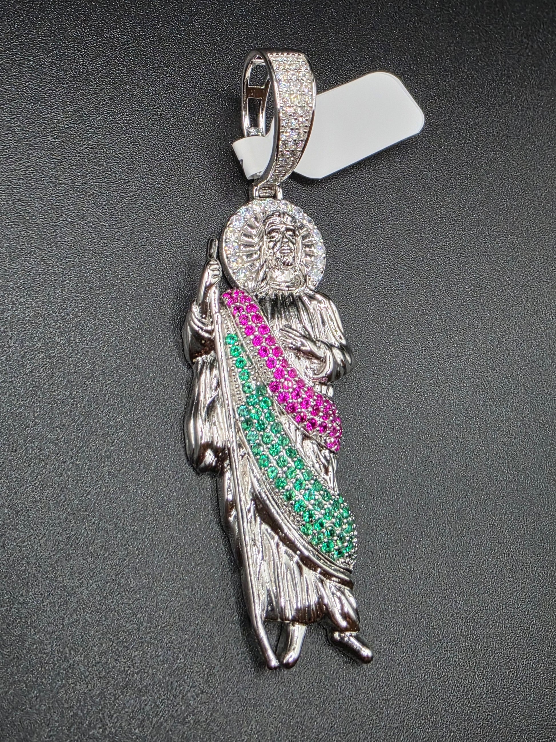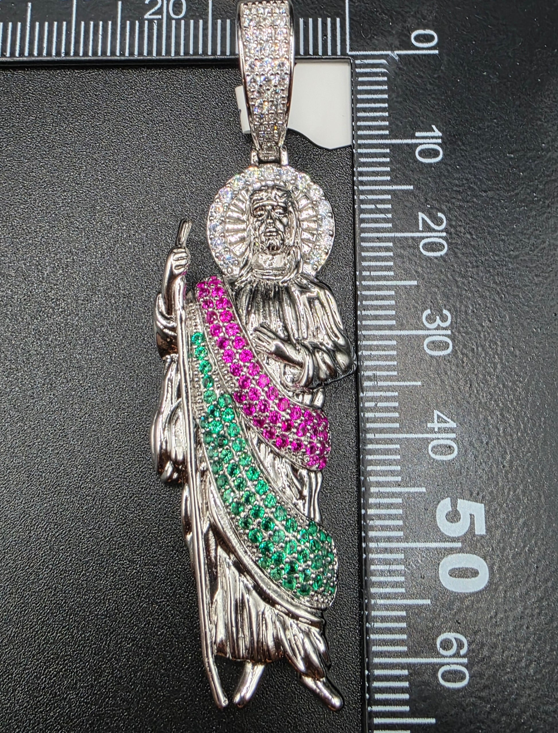 925 Sterling Silver Multi Color CZ St Jude Hip Hop Pendant