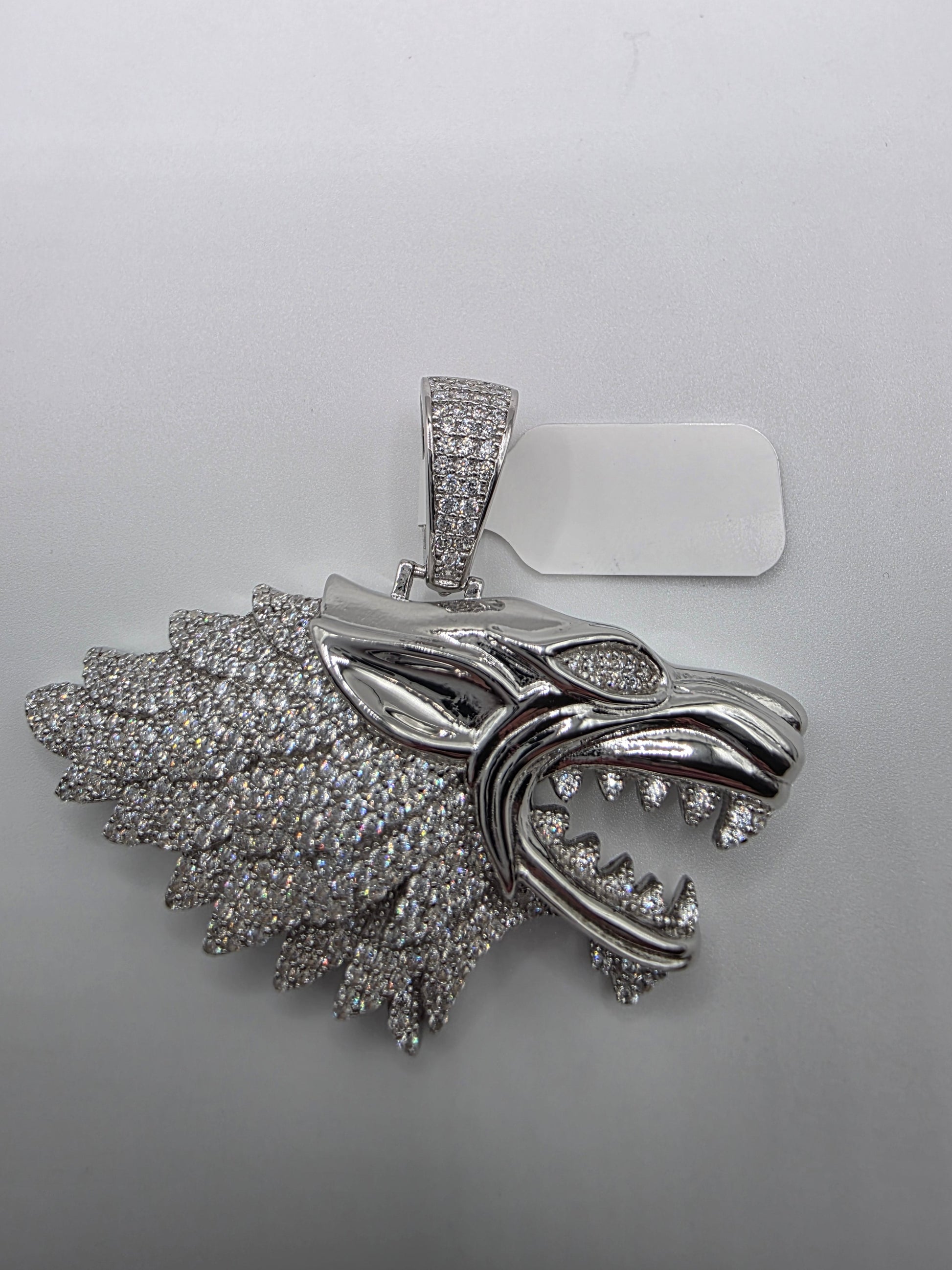 Rhodium Plated 925 Sterling Silver CZ Wolf Hip Hop Pendant